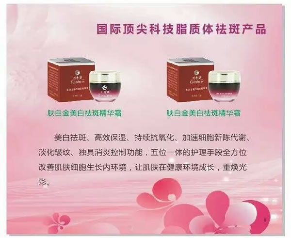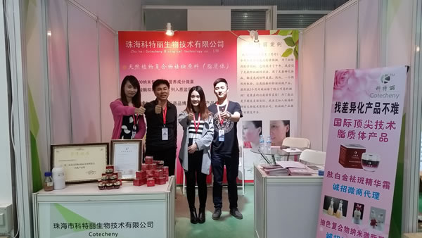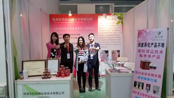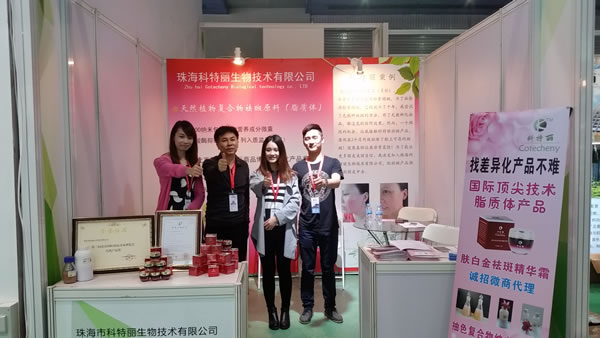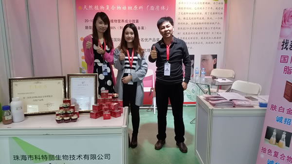 2016年3月9日,广州第44届美博会,珠海科特丽携国际技术的脂质体产品:肤白金祛斑霜、抽色复合物纳米微脂囊吸引众多国内外客商的目光,不断有客商来到科特丽公司展位咨询洽谈合作。